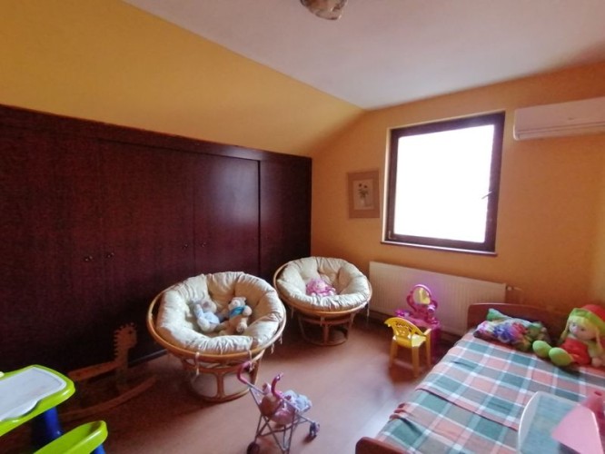 Prodaje se četvorosobna prizemna kuća sa potkrovljem od 235 kvm na placu od 988 kvm. Kuća je građena od čvrstog materijala. Grejanje je etažno na čvrsto gorivo i na struju, struja je trofazna, voda je gradska, u dvorištu se nalazi septička jama. Na podovima je laminat. Kuća se statoji iz predsoblja, dnevnog boravka, tri spavaće sobe, kuhinje sa trpezarijom, dva kupatila i ostave. Zidana garaža se nalazi uz kuću a od pomoćnih prostorija postoji šupa. U okviru cene ostaju kuhinja, ugradni plakari, 2 kreveta, trpezarijski stol sa 10 stolica i 4 klima uređaja. Ev. Br. 5662