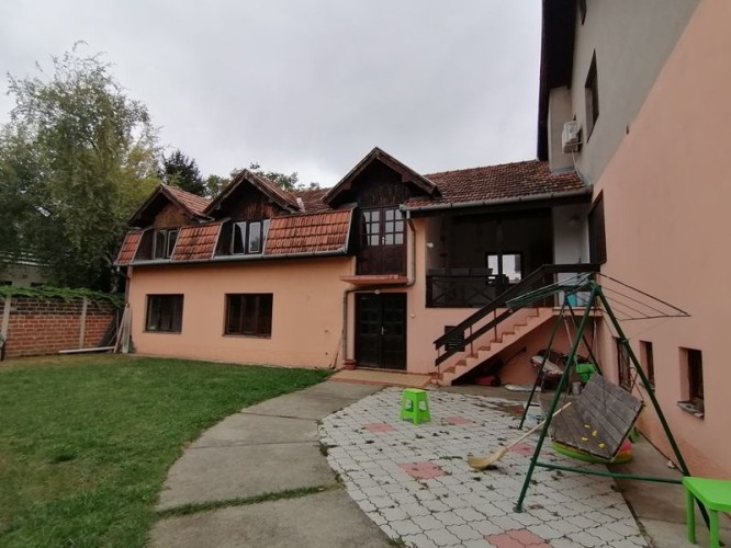 Prodaje se spratna kuća sa potkrovljem površine 414m2, zajedno sa okućnicom, zidanom garažom i pomoćnim objektom na ograđenom placu površine 600m2. Kuća je od čvrstog materijala i sastoji se od sedam (7) soba, dva (2) kupatila, zasebnim WC-om, hodnikom, kuhinjom i trpezarijom, sa balkonima na oba nivoa. Podovi u sobama koje su smeštene na prizemlju nalazi se parket, dok se u sobama na spratu nalazi brodski pod, a kuhinja, oba kupatila i zaseban WC su popločani keramičkim pločicama. Postoji mogućnost etažnog grejanja na struju, gas i čvrsto gorivo. Kuća se nalazi u mirnom kraju, sa lepim dvorištem. Ev.Br. 5100