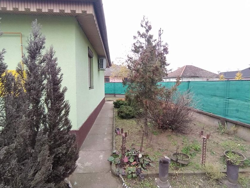 U Mohačke ulice prodaje se kuća površine 73 m2 na placu od 617 m2. Sastoji se od tri sobe, dugačkog hodnika, trpezarije i kuhinje. Podovi su laminat, parket i pločice, stolarija drvena, grejanje je etažno na gas i čvrsto gorivo. Na placu se nalazi i garaža i šupa.
