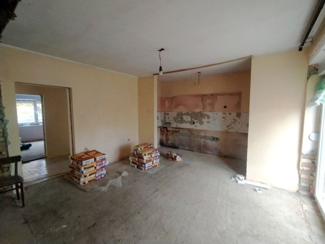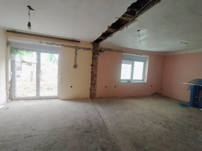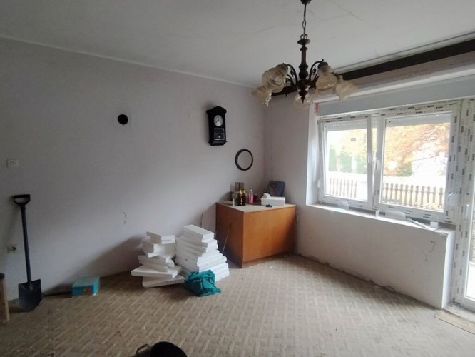 Delimično renovirana kuća od 110 m² od čvrstih materijala na placu od 1.033 m² u centru Novog Žednika. Sastoji se od hodnika, dve sobe, kupatila i prostranog dnevnog boravka sa trpezarijom i kuhinjom, sve sa izlazom na terasu sa pogledom na dvorište. Ugrađeni su novi PVC prozori i vrata, a zidovi su termoizolovani. Podovi su betonski i popločani, prozori su PVC, a grejanje je na struju.