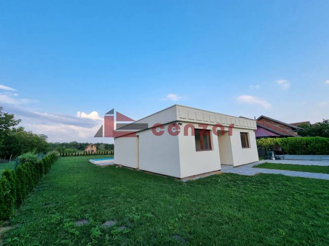 Prodaje se moderno projektovana kuća na Paliću građena 2023. godine, površine 111 m2. U svom sastavu ima hodnik, 2 spavaće sobe, kupatilo i dnevnu sobu sa kuhinjom. Dnevna soba ima puno prirodne svetlosti i orijentisana je ka dvorištu sa pogledom na bazen površine 33 m2 koji ima ugrađenu pumpu za filtriranje i mešanje vode. Kupatilo je pripremljeno za montažu sanitarija po želji kupca, postavljen je samo stakleni paravan. Stolarija je drvena, podovi su laminat i pločice, struja je trofazna. Grejanje je na inverter klimu i radijatore na struju ali postoji mogućnost ugradnje solarnih panela, toplotne pumpe i sl. Bunar je iskopan na 70 m dubine, kanalizacija je gradska. Sa ulične strane nalazi se zidana betonska ograda sa ugrađenom kapijom na daljinsko upravljane, a sa bočne i zadnje strane uz žičanu ogradu posađenje su tuje. Postoji mogućnost dogradnje 1 sprata. Objekat se nalazi u asfaltiranoj ulici i udaljen je 2 km od jezara.