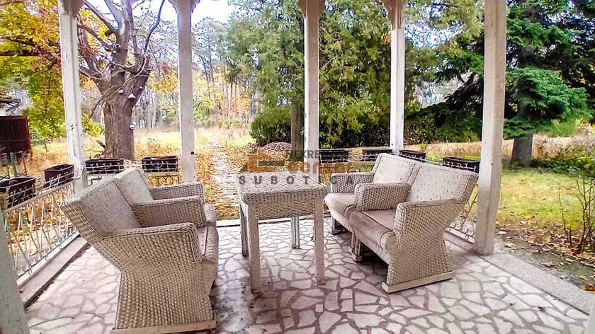 Prodaje se kuća na izuzetno atraktivnoj lokaciji na Paliću. Prostire se na 2590 m2 placa sa puno zelenila. Sastoji se od hodnika, četiri sobe, kuhinje, kupatila i ostave. Ispred glavnog ulaza je prostor za sedenje, dok je iz dnevnog boravka izlaz na terasu rađenu u tradicionalnom Palićkom stilu. Pored kuće su dva pomoćna objekta. Jedan se koristi kao garaža za jedan automobil, a moguće je otvoriti ulaz za još jedno vozilo i formirati duplu garažu. Postoji kolski ulaz i prilaz do garaže kroz dvorište. Drugi objekat je uređen kao jednosoban stan. Kuća ima centralno gasno grejanje. Struja je trofazna, postoje dva sata za struju. Voda je gradska, kanalizacija je septička jama. Postoje dva kolska ulaza. Idealno je za stanovanje ili bavljenje turizmom. Na placu je moguća izgradnja još nekoliko kuća, a moguća je kupovina kuće sa manjom površinom dvorišta uz značajnu korekciju cene.