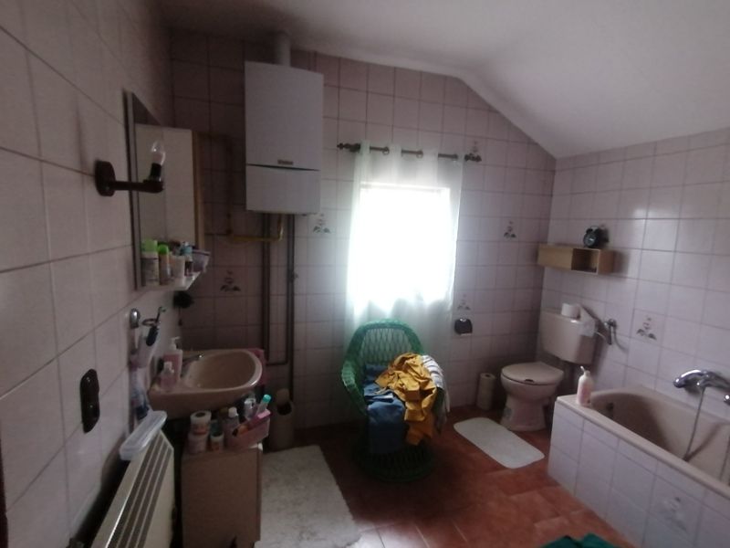 Prodaje se samostalna prizemna kuća sa potkrovljem ukupne površine 180m2 na placu površine 7690m2. Kuća je građena od čvrstog materijala sa pvc stolarijom i parketom na podovima. Postoje dve vrste etaznog grejanja, na gas i cvrsto gorivo. Struja je trofazna, kanalizacija gradska, voda takođe gradska sa bušenim bunarom. Sastoji se iz ukupno tri sobe, kuhinje, ostave, hodnika, terase i dva kupatila. Garaza se nalazi u sklopu kuce. Ev.Br. 5422