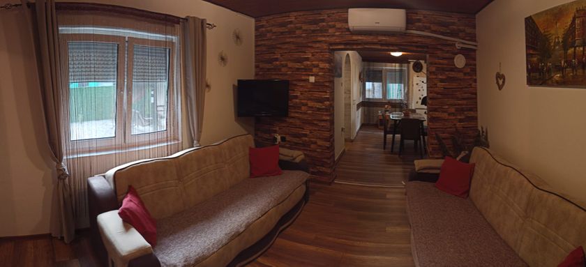 Atraktivna nekretnina na Paliću, u atraktivnom delu Vikend Naselja pored jezera, ukupne površine 103 m2. 84m2 pod krovom od čega je 66 m2 stambenog prostora, prodaje se kao registrovan i razrađen apartman sa prosečnom ocenom 9.8. \-Idealna prilika za opuštajući odmor ili investiciju. \-Lokacija: 50m od obale i plaže, 400m od aquaparka, 100m od autobuske stanice. \-Struktura: kuhinja, trepezarija, 2 spavaće sobe, dnevna soba, kupatilo, 2 nusprostorije, velika pokrivena terasa (27 m2), u potkrovlju mogućnost renoviranja za još jednu sobu. \-Oprema: kompletno nameštena sa novim nameštajem i uređajima. \- Legalizovano 100%. Vlasništvo 1/1. Dodatne pogodnosti: velika nadkrivena terasa, parking mesto, uređeno i ograđeno veliko dvorište, solarni tuš, zidana česma, veliki zidani roštilj, video nadzor, itd…. Tehničke specifikacije: monofazna struja, gradski vodovod, nova septička, PVC stolarija, podovi od laminata, grejanje na dve inverter klime, mogućnost uvlačenja gasa, telefona, optičkog interneta i CATV. Moguća zamena za manji noviji ili nov stan, niže spratnosti sa terasom, uz doplatu. Za ozbiljnog kupca moguć dogovor oko cene i plaćanja. Ne propustite priliku za vlasništvo nad ovom prelepom kućom na Palićkom jezeru. Za dodatne informacije i pregled, kontaktirajte nas.