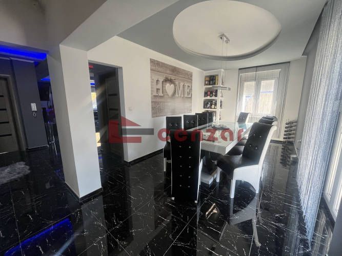 Kuća građena u tri etaže sa apartmanom koji ima odvojen sopstveni ulaz.U suterenu se nalazi luksuzni wellness prostor koji uključuje saunu ,bazen i teretanu. U prizemlju je smešten dnevni boravak, spavaća soba, kupatilo i kuhinja sa trpezarijom koja ima izlaz na dvorišnu terasu.U potkrovlju se nalaze tri spavaće sobe i kupatilo.U oba objekta je postavljeno podno grejanje na gas,struja trofazni priključak ,kanalizacija i voda gradska.U dvorištu se nalazi garaža za dva automobila.Garažna vrata su na daljinsko upravljanje.Podzemne cevi su postavljene ispod površine travnjaka gde se aktivira automatsko navodnjavanje. U kući je postavljen video nadzor. Prodaje se zajedno sa nameštajem ,belom tehnikom i odmah je useljiva.Postoji mogućnost za zamenu stana,građevinsko materijala.