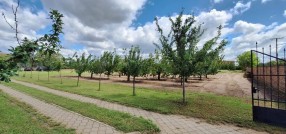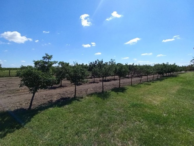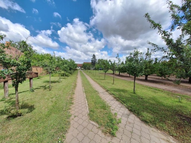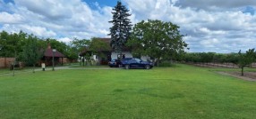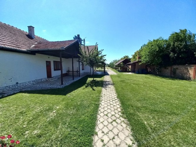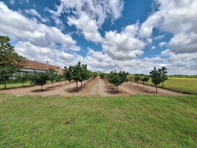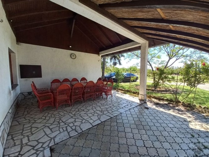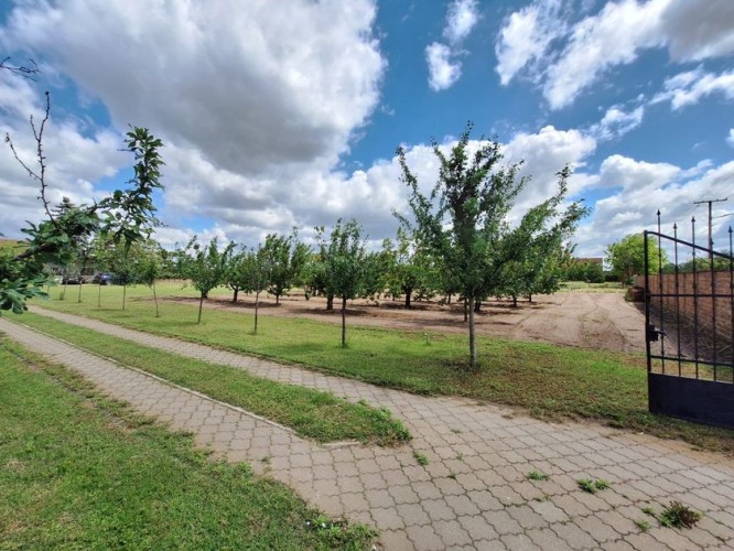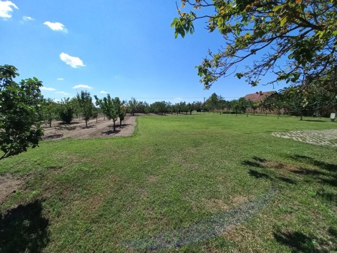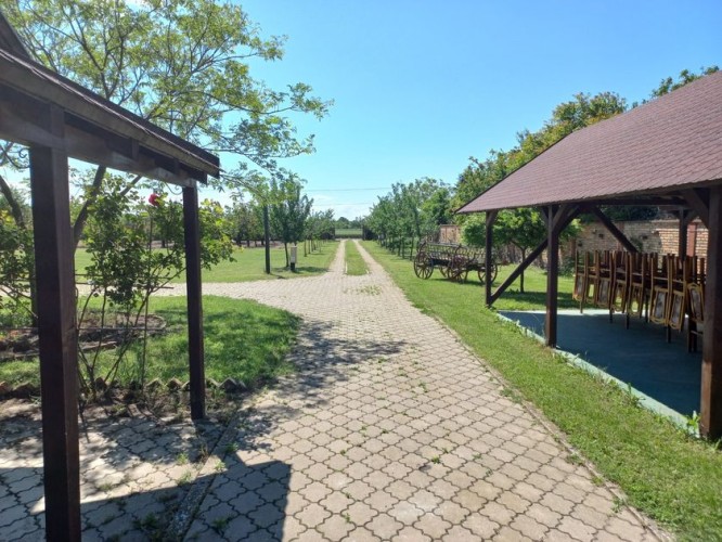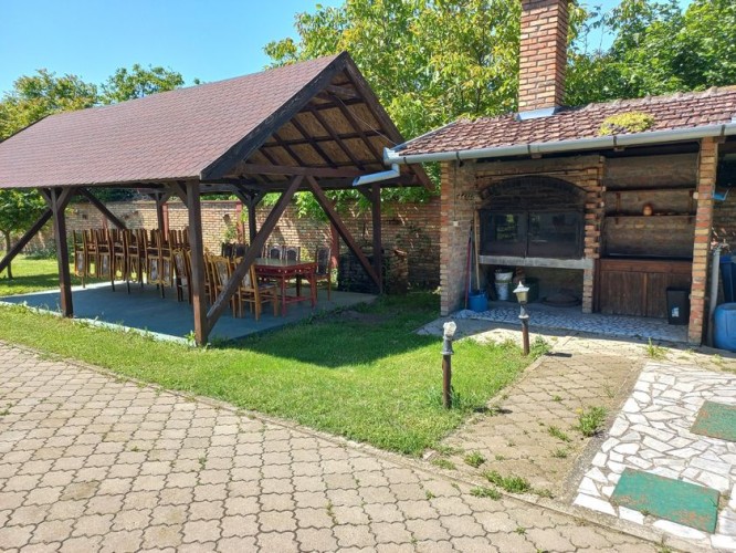 **Ranč - imanje** između već poznatog Jelen salaša i Majkinog salaša, na Paliću, sastoji se od **petosobne kuće** sa dva kupatila i velikom terasom, pov.200 m2, sale sa kuhinjom i toaletima-**igraonice pov.150 m2- kapaciteta 50 osoba, ,** **skladište jabuka kapaciteta 4 vagona, pecara , kotlarnica,** **magacin i ostave sve na površini 195 m2,.** U dvorištu **letnjikovac sa zidanim roštiljem** na elekt.pogon. **Voćnjak dunja** od 70 stabala, **kajsija** 400 stabala i **oraha** 60 stabala, u sistemu za zalivanje, kap po kap, iz arterijskog bunara dubine 116 metara. Travnjak se zaliva iz drugog bunara dubine 42 metra. Imanje je ograđeno , **ukupne površine zemljišta 15.458 m2**. Asfalni je prilaz imanju na 3, 5 km udaljenosti od centa Palića.