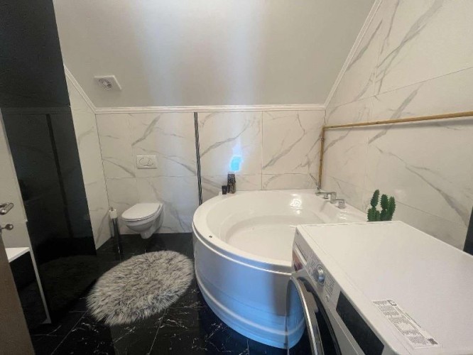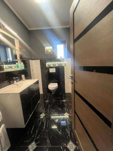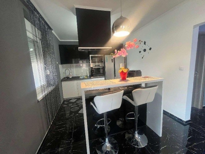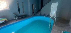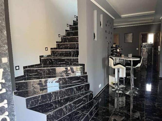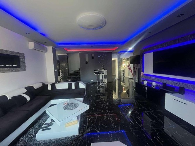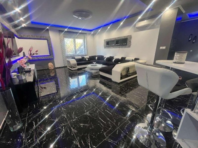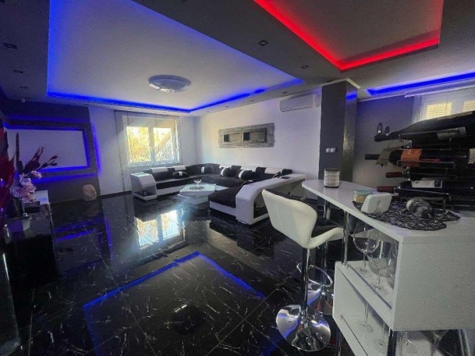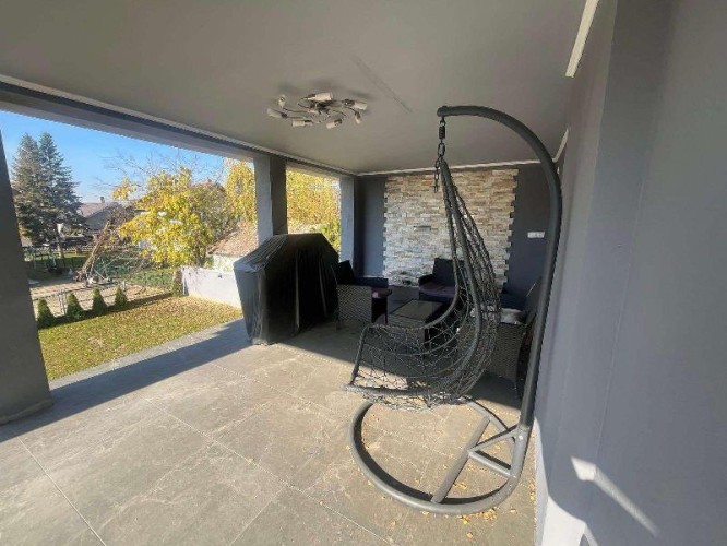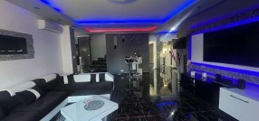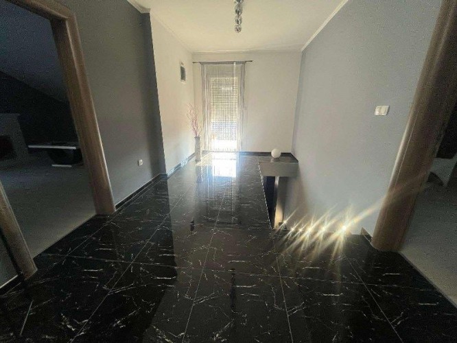 Prodaje se luksuzno opremljena spratna kuća površine 483m2 na placu veličine 663m2. Kuća je građena od cigle sa pvc prozorima i laminatom na podovima. Grejanje je podno na gas, struja je trofazna, voda i kanalizacija su gradski. Kuća se sastoji iz hodnika, kuhinje sa trpezarijom, osam soba, velike terase, ostave i četiri kupatila. U suterenu kuće se nalazi zatvoreni bazen sa saunom. U dvorištu se nalazi dupla garaža. Ev.Br. 5587
