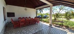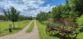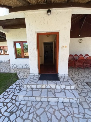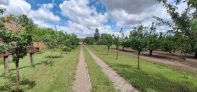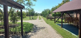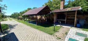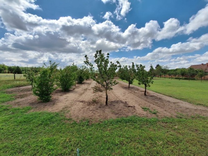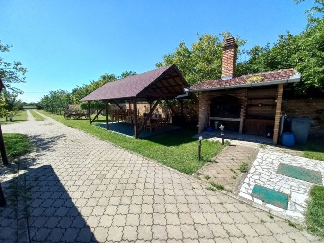 **Ranč - imanje** između već poznatog Jelen salaša i Majkinog salaša, na Paliću, sastoji se od **petosobne kuće** sa dva kupatila i velikom terasom, pov.200 m2, sale sa kuhinjom i toaletima-**igraonice pov.150 m2- kapaciteta 50 osoba, ,** **skladište jabuka kapaciteta 4 vagona, pecara , kotlarnica,** **magacin i ostave sve na površini 195 m2,.** U dvorištu **letnjikovac sa zidanim roštiljem** na elekt.pogon. **Voćnjak dunja** od 70 stabala, **kajsija** 400 stabala i **oraha** 60 stabala, u sistemu za zalivanje, kap po kap, iz arterijskog bunara dubine 116 metara. Travnjak se zaliva iz drugog bunara dubine 42 metra. Imanje je ograđeno , **ukupne površine zemljišta 15.458 m2**. Asfalni je prilaz imanju na 3, 5 km udaljenosti od centa Palića.