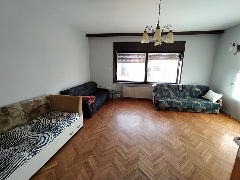 Prodaje se spratna, kvalitetno zidana kuća površine 137 m2 na placu od 475 m2. U prizemlju se iz velikog hodnika ulazi u tri spavaće sobe, kupatilo i kuhinju sa trpezarijom. Tu je i balkon i izlaz u dvorište. U suterenu se nalazi kotlarnica, ostava i prostrana garsonjera sa sopstvenim tušem i WC-om. Na spratu su predviđena dva odvojena stana sa sopstvenim kupatilima, u sivoj fazi je.. U dvorištu se nalazi garaža, natkriveni parking, pomoćni objekti i bašta. Prozori su drveni, grejanje je etažno na gas i čvrsto gorivo, podovi su parket, pločice i beton.