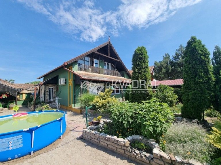 Subotica - Peščara, prodaje se prizemna samostalna kuća sa potkrovljem u površini od 220kvm. Građena je od blokova i cigla i nalazi se na placu veličine 1450kvm. U svom sastavu poseduje: predsoblje, dnevnu sobu, tri spavaće sobe, kuhinju sa trpezarijom i dva kupatila. Stolarija je pvc i drvena. Na podovima soba je laminat, a u kuhinji je keramika. Demit fasada. Trofazna struja. Bušeni bunar, postoji mogućnost priljučka na gradsku vodu. Septička jama. Grejanje je etažno na čvrsto gorivo, postoji mogućnost priključka na gas. Garaža se nalazi u sklopi kuće. U dvorištu se nalazi radionica od 80kvm i kotlarnica. Red.br. 22-32