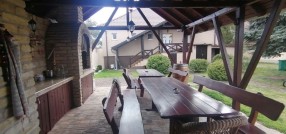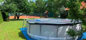 Prodaje se prizemna samostalna kuća površine 120m2 na placu površine 1790m2. Kuća je građena od čvrstog materijala sa parketom i pločicama na podovima i betonskom pločom na plafonu, pvc stolarijom i demit fasadom. Sastoji iz prostranog hodnika, dnevnog boravavka sa trpezarijom i kuhinjom, dve spavaće sobe, kupatila i prostorije za odlaganje/garderobera. Grejanje je etažno na struju sa mogućnošću priključka na gasovodnu mrežu, struja je trofazna, voda je gradske (takođe postoji bušeni bunar dubine cca 60m), dok se u dvorištu nalazi septička jama. U dvorištu se nalazi zidana garaža, letnja kuhinja površine 50m2 sa terasom i roštiljom i podrum površine 36m2. Dvorište je lepo uređeno, popločano, sa bazenom i teniskim terenom. U ceni ostaju stvari iz velike kuće. Ev.Br. 5389