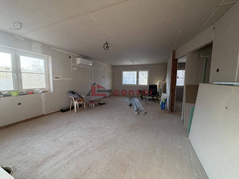 Novoizgrađena kuća nalazi se u sivoj fazi izgradnje građena od termo blokova.U suterenu se nalazi garaža,u prizemlju je organizovan stambeni do kuće.Centralni deo čini prostrani dnevni boravak povezan sa kuhinjom.Pored toga u prizemlju se nalazi spavaća soba,kupatilo i još jedna soba sa galerijom gde je predviđena dodatna spavaća soba.Podovi su trenutno u betonskoj ploči,stolarija pvc.Na placu je obezbeđen nov bunar,septička jama,kao i priključena monofazna električna energija.