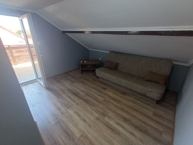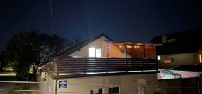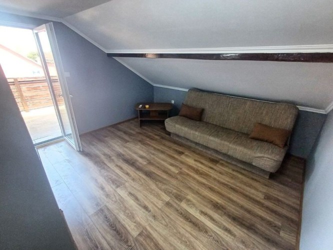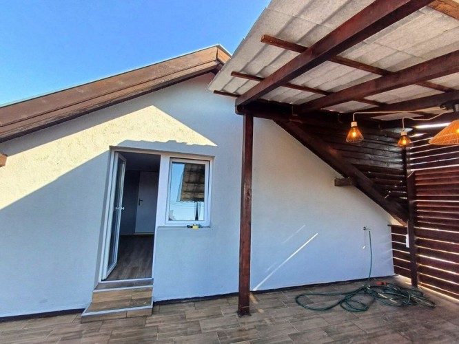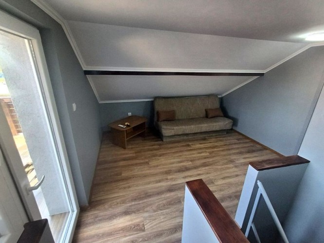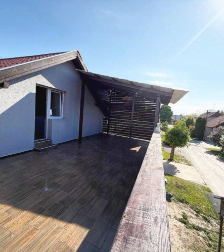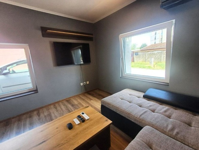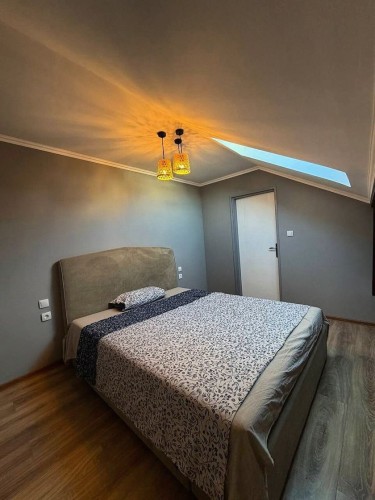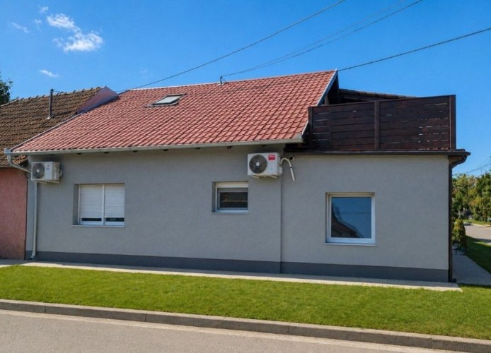 Savremena kuća premijum kvaliteta površine 143 m², smeštena na samo 1,5 km od centra grada — savršen spoj privatnosti, mira i gradske dostupnosti. Novo kapitalno izgrađen objekat od betona i cigle, projektovan sa naglaskom na trajnost, energetsku efikasnost i visok nivo komfora. Funkcionalan raspored obuhvata tri prostrane sobe, dodatnu prolaznu prostoriju (idealnu za dnevni boravak ili radni kabinet), modernu kuhinju i kupatilo. Poseban akcenat je na zonama za uživanje: — prostrana terasa od 33 m², koja predstavlja pravi produžetak doma — idealna za jutarnju kafu, porodična okupljanja i prijem gostiju na otvorenom; — stilski uređen bar prostor — ambijentalna zona namenjena druženju i večernjem opuštanju, koja domu daje savremeni „lifestyle“ karakter. Na spratu se nalazi prijatna spavaća soba sa mansardnim prozorom, koja prostoru daje prirodnu svetlost i posebnu atmosferu. Kuća je potpuno opremljena novim nameštajem i tehnikom i spremna za useljenje bez dodatnih ulaganja. Prodaje se u viđenom stanju, nameštena i sa svim uređajima. Sve je novo, a po celoj kući je instalirano osvetljenje sa različitim režimima. Na terasi je takođe LED osvetljenje. Krov je takođe nov, kao i cela kuća. Komfor i infrastruktura: podno grejanje, 3 inverter klime, savremeno osvetljenje, trofazna struja, gradska voda i kanalizacija. Uređeno dvorište: negovan travnjak, dva parking mesta i asfaltiran prilaz. Odlična lokacija — u blizini su javni prevoz, supermarket „Svetofor“, prodavnice, pekare i škole. Idealno rešenje za porodični život, tako i kao investicija visoke likvidnosti. Na drugom spratu postoji mogućnost da se uredi još jedna spavaća soba površine oko 20 m² ili prostrano kupatilo, s obzirom na to da su već obezbeđeni inverter klima, kanalizacija i voda. Takođe, voda je izvedena i na terasu.