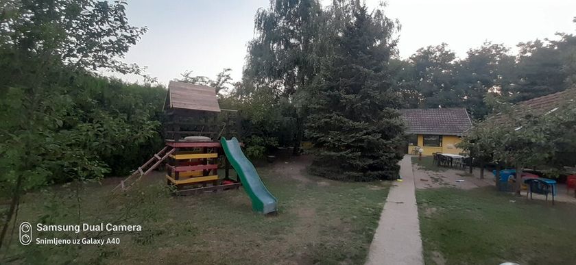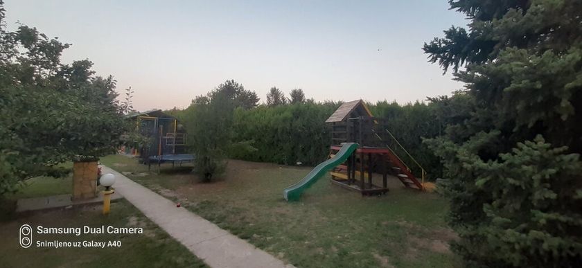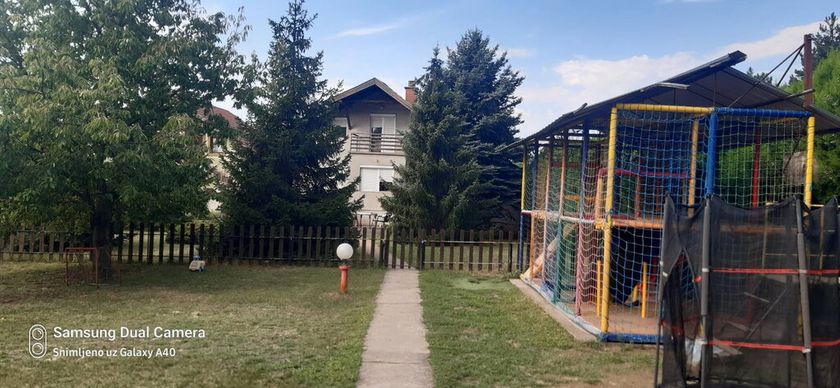 Porodična kuća na tri etaže od 185 m2 na parceli od 2001 m2. Na prizemlju ima dnevni boravak sa kuhinjom i trpezarijom, dve spavace sobi, kupatilo i toalet. Na spratiu je jos 3 sobe. U suterenu se nalaze još dve sobe. Na podovima su parket i pločice, prozori su PVC, a grejanje je na gas. U dvorištu je zidana garaža. od 20 m2 Takođe na parceli je nalazi pomoána zgrada koja se koristi kao privatni vrtić od 110m2 sa igralištem .
