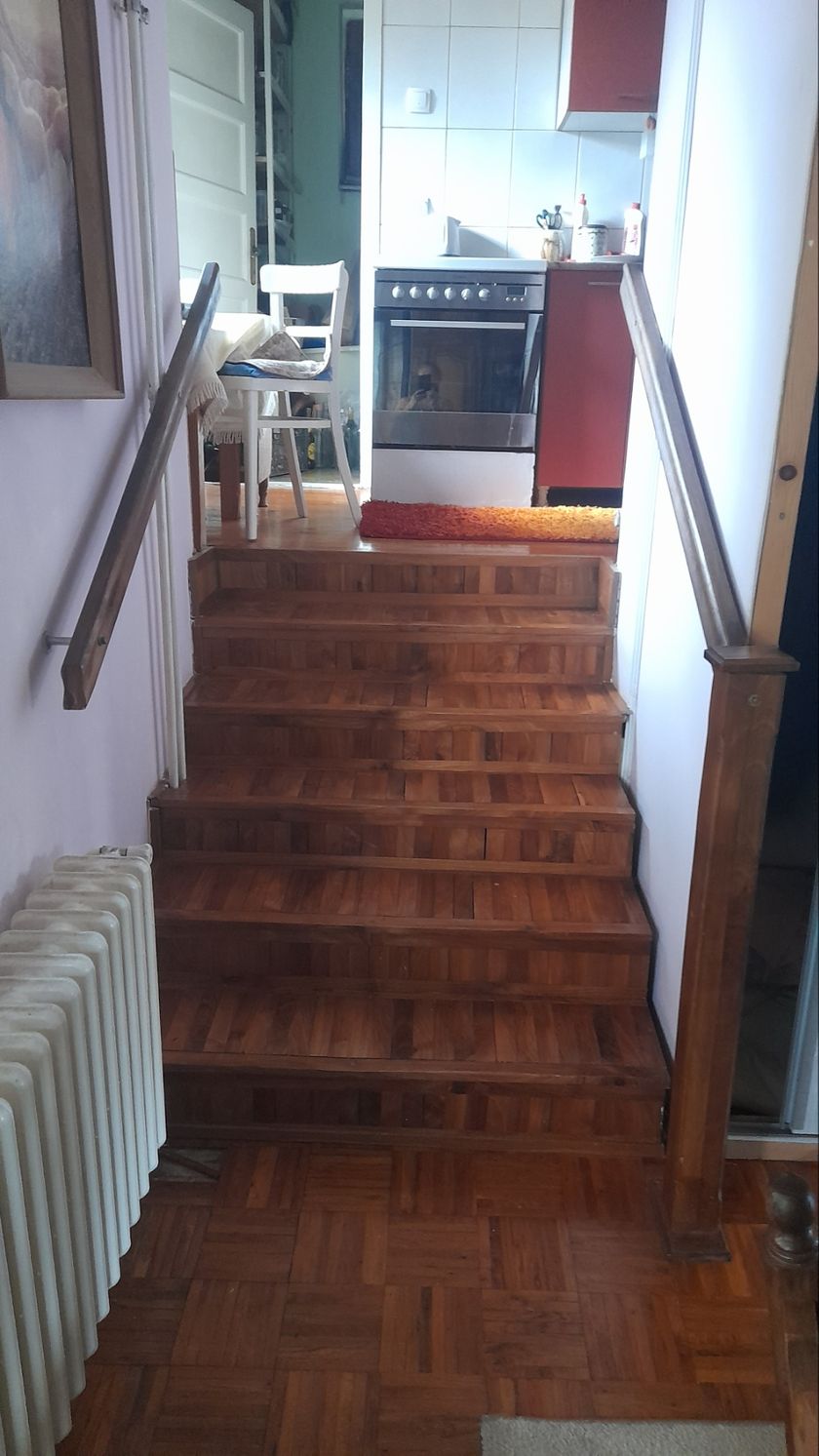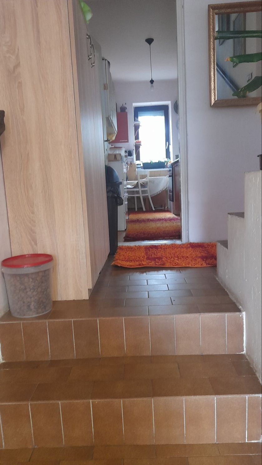 Lepo sredjena kuća na prodaju u mirnom delu željezničkog naselja sa velikim dvoristem. Uvučena je sa ulice i ogradjeno dvorište. Tu su dve parcele, na jednoj je kuca a na drugoj moze da se napravi jos jedna kuca, ili magacin, radionica... Kuća poseduje podrum sa etažnim grejanjem a ima uvučeno i gasno grejanje. Veliki dnevni boravak sa trpezarijom iz koje se izlazi na terasu, dok se na medjuspratu nalazi kuhinja, ostava i kupatilo. Na spratu ima dve spacaće sobe sa mogućnošću adaptacije tavanskog prostora u još jednu veliku sobu. Uz kucu ostavljamo kuhinjske elemente, ugradni plakar, i nešto nameštaja, po dogovoru. Garaža se nalazi u skopu objekta, sa jednom velikom tersaom na garaži. U dvoristu je jos jedna ostava, velicine 20m2. Kuća može da se prilagodi raznim namenama i potrebama. U blizini, na 10tak min. pešice nalazi se škola, vrtić, a na 5 min je prodavnica. Kuca je legalizovana.