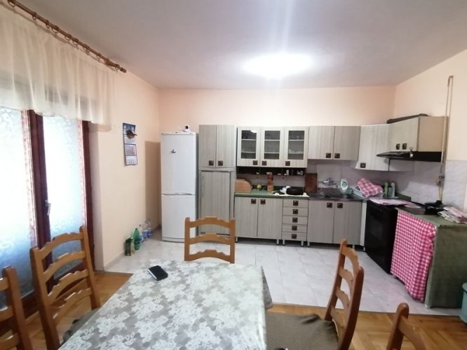 Prodaje se prizemna samostalna kuća sa potkrovljem ukupne površine 103m2 na placu površine 1458m2. Kuća je građena od čvrstog materijala sa klasičnom stolarijom, parketom na podovima i betonskom pločom na plafonu. Grejanje je etažno na gas, struja trofazna, dok se vodom snabdeva iz gradskog vodovoda, a u dvorištu se nalaze dve septičke jame. Kuća se sastoji iz hodnika, prostranog dnevnog boravka, kuhinje sa trpezarijom, kupatila i dve spavaće sobe na prizemlju, dok potkrovlje nije kompletno završeno. Pored kuće se nalazi letnja kuhinja i jedan pomoćni objekat. Ev.Br. 5351