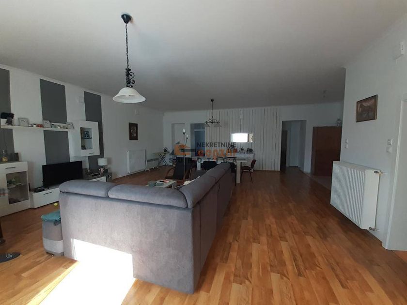 Prodaje se kuća građena od čvrstog materijala površine 206 m2 sa pomoćnom zgradom površine 54 m2 (garaža) na parceli od 6534 m2. Takođe prodaje se i gradsko građevinsko zemljište oko kuće površine 2,37 ha koje pripada zoni porodičnog stanovanja malih i srednjih gustina.Kuća u svom sastavu ima hodnik koji vodi u prostrani dnevni boravak iz kojeg se ulazi u 3 spavaće sobe i kupatilo, ostavu i kuhinju iz koje se izlazi na terasu pored koje je smeštena kotlarnica. U sklopu kuće sa odvojenim ulazom koji se može koristiti za poslovne delatnosti nalaze se 2 prolazne prostorije i sanitarni čvor. Kuća je legalizovana, izolovana demit fasadom od 8 cm i obezbeđena alarmnim sistemom. Podovi u kući su laminat i pločice, stolarija PVC, grejanje je etažno na struju i čvrsto gorivo. Vodovodna mreža priključena je na bušeni bunar dubine 50m a kanalizaciona na septičku jamu.