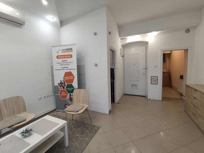 Centar 1- Izdajem poslovni prostor na visokom prizemlju zgrade sa pristupom sa ulice. Ima 50 m2, prijemni prostor, kancelariju, toalet. Ima svu infrastrukturu. Cena: 500 eura+ depozit 500 eura.