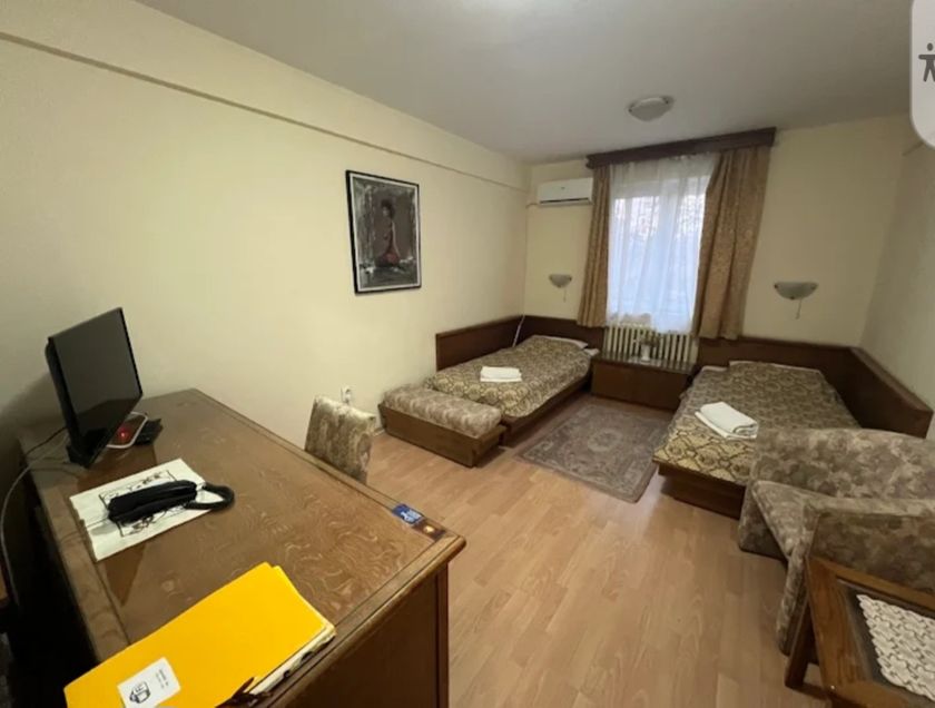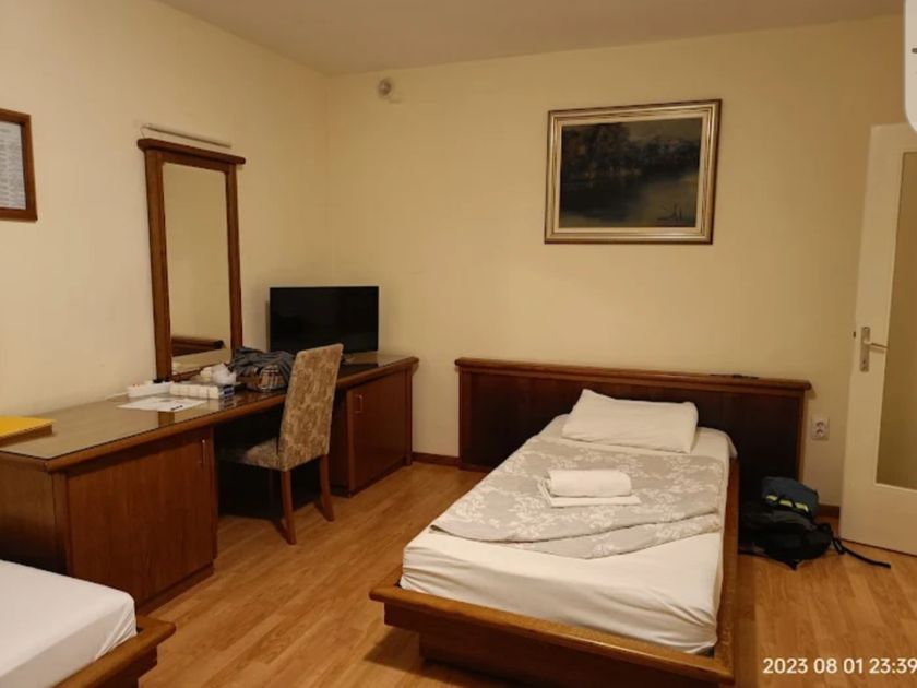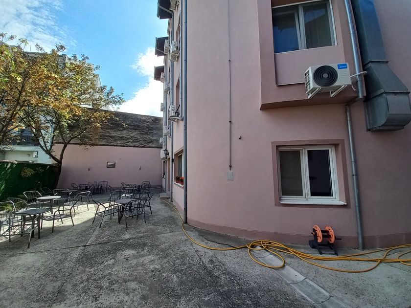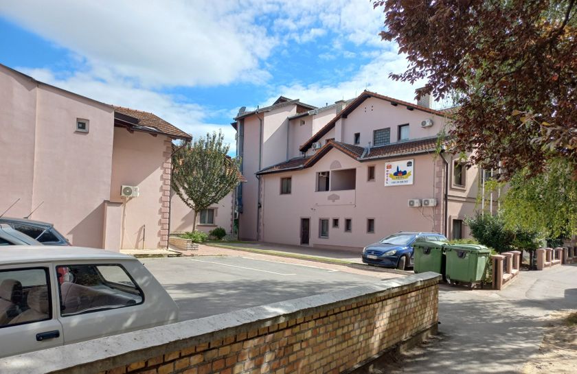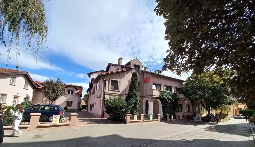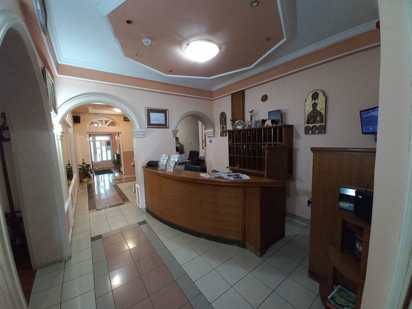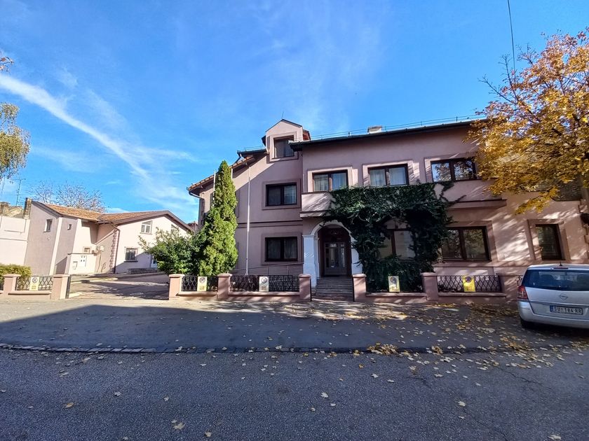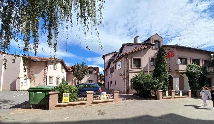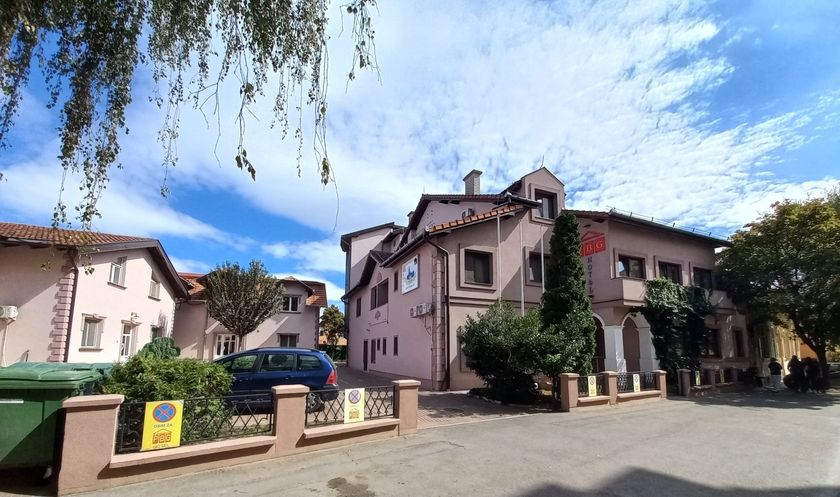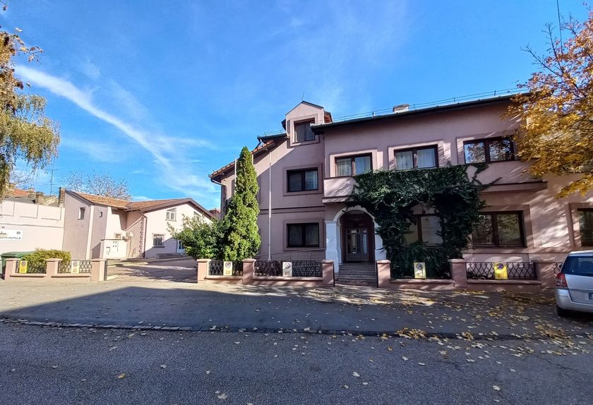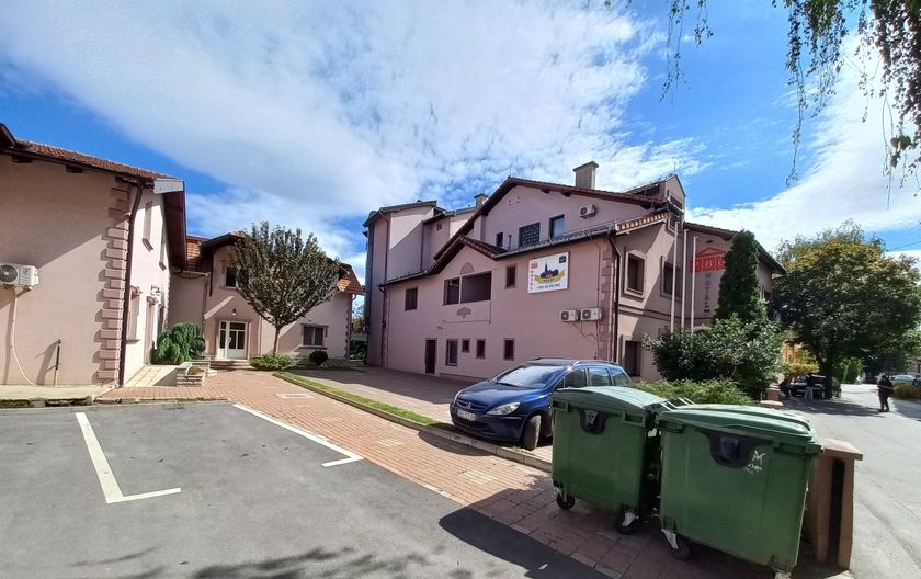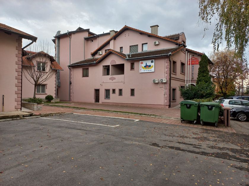 **Grni HOTEL u užem centru Grada,** površine **1536 m2,** kapaciteta **70 osoba,** sastoji se od recepcije, restorana kapaciteta 60 ljudi, površine 120 m2, sala za sastanke 20 ljudi, tri kancelarije, tv sala, kuhinja i kotlarnica u prizemlju. Na prvom spratu , drugom spratu i potkrovlju se nalazi 36 dvokrevetnih i trokrevetnih soba, svaka sa kupatilom. U dvorištu su depadansi-apartmani. Objekat se greje toplotnom pumpom, što je najekonomičnije grejanje i hlađenje. Mada postoje i inverter klime. Površina dvorišta je 1.400 m2, sa dvadeset parking mesta.