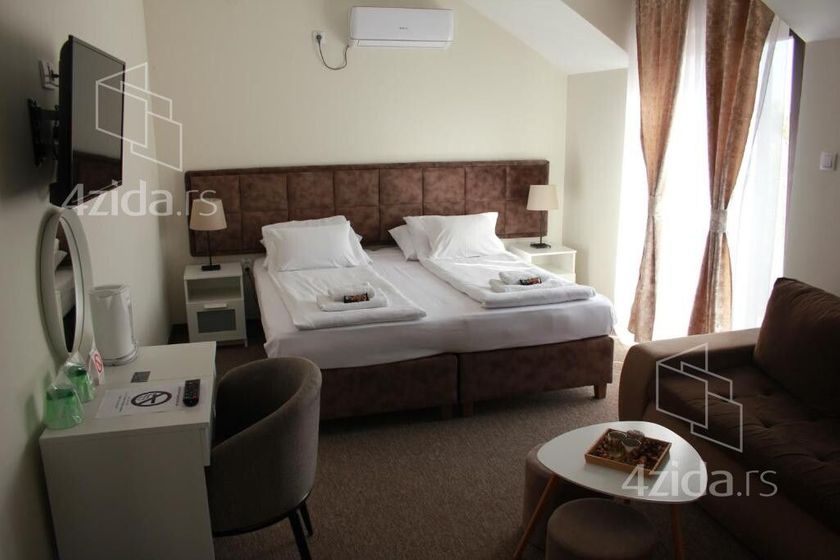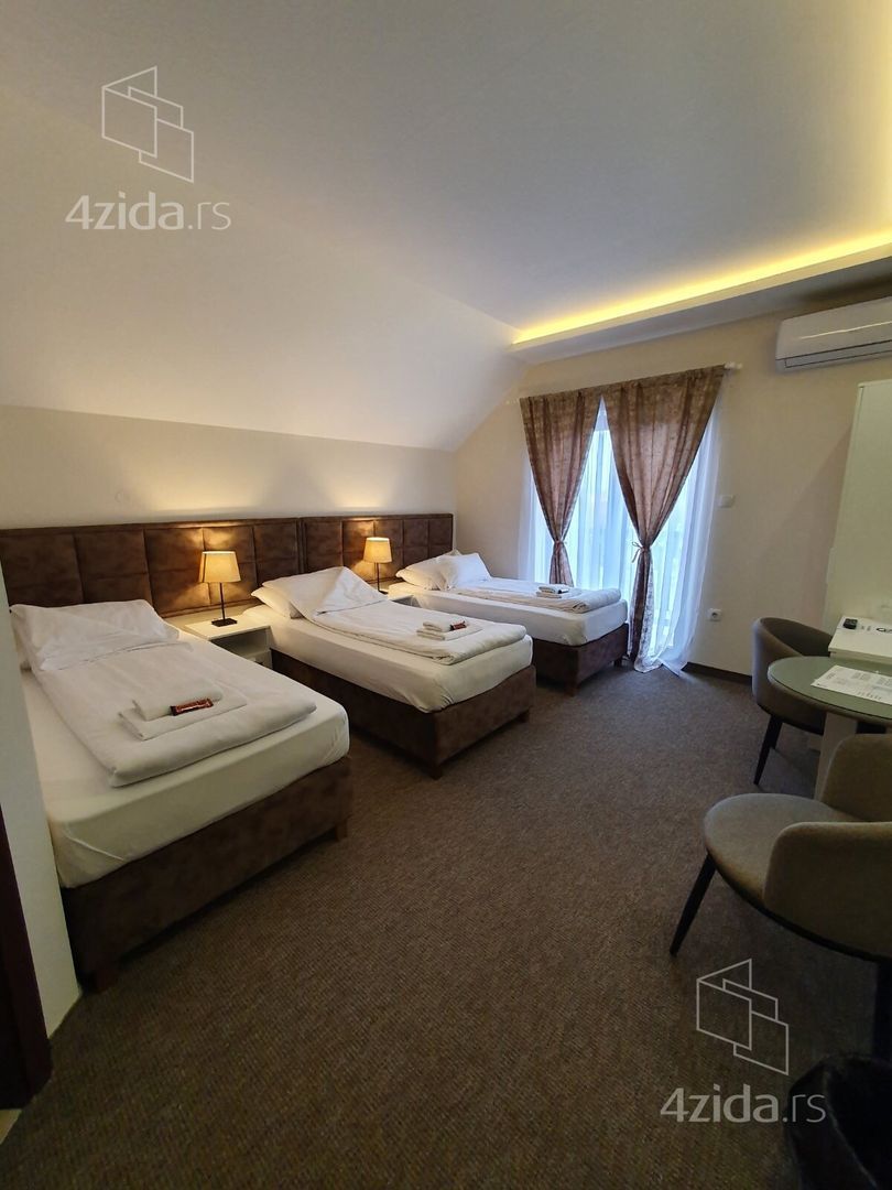 Izdaje se ugostiteljski objekat sa 14 jedinica (svaka jedinoca sadrzi kupatilo , klimu i moderan namestaj za spavanje) u sklopu objekta je i kafic i bazen. Ispred objekta je parking. Pogodan i za druge delatnosti.(medicinska ordinacija, ET sektor….)