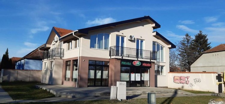 **Stambeno posloa zgrada,** sastoji se od **poslovnog prostora** površie 175 m2 , pekara kompletno opremljena, u prizemlju , **tri stana na spratu,** dva dvosobna površine 38 m2 i 48 m2 i jedan trosoban pov.58 m2, kompletno namešteni. Plac 600 m2