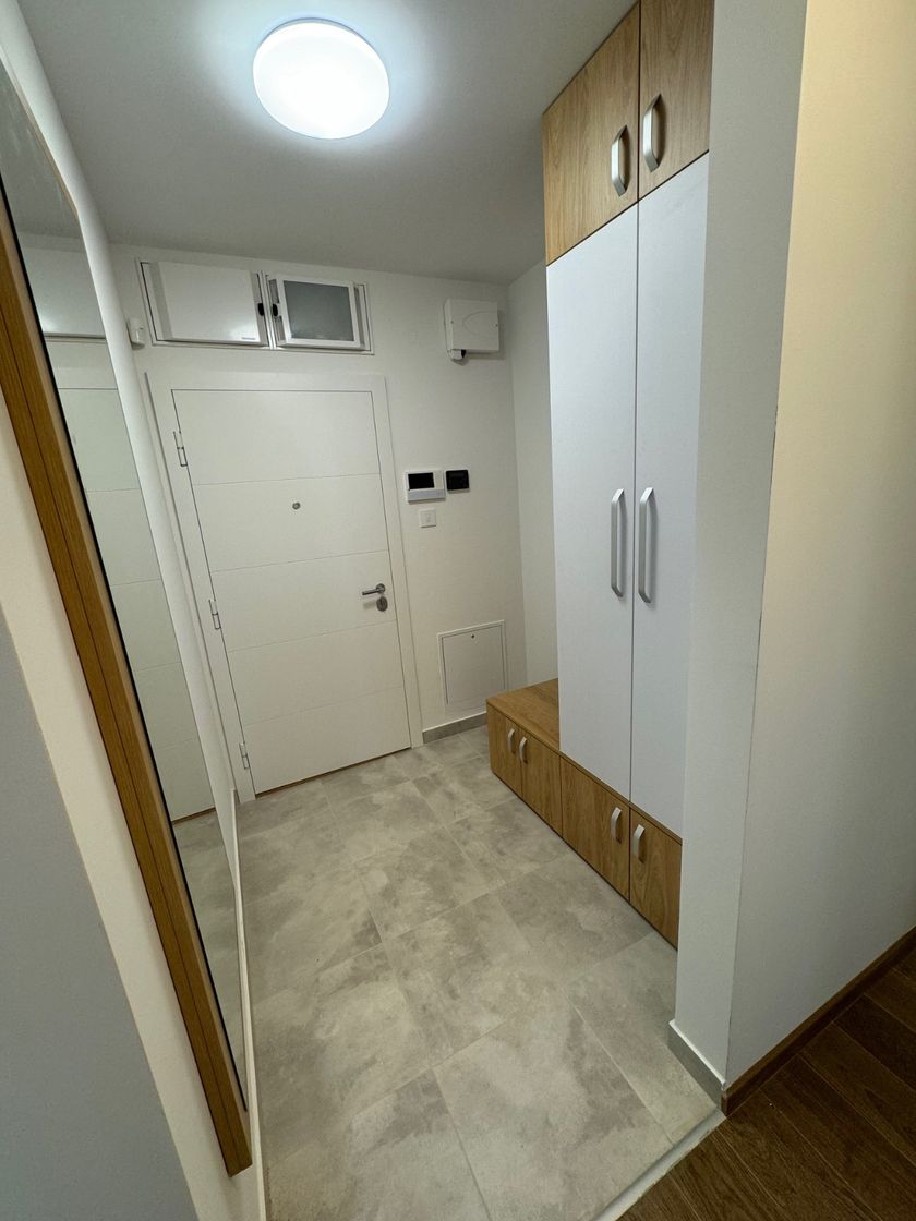 Izdajem novi dvosoban stan od 53kvm sa garažom u Subotici,u ulici 8.marta br.20 IV sprat(Prozivka)Stan je opremljen u kompletu(kuhinja,trpezarija,dnevni boravak,spavaća soba,kupatilo I predsoblje.Od uređaja poseduje veš mašinu,sudo mašinu,rernu,keramičku ploču,frižider,TV,Acces point,Smart alarm-roletne-osvetlenje-klimu I detektor poplave.Uređaji imaju 5 god garanciju.Isključivo ne pušačima I bez kućnih ljubimaca. Cena 400eur+depozit u visini mesečne kirije
