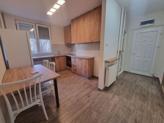 Kompletno renoviran polunamešten dvosoban stan na Radijalcu. Nalazi se na visokm prizemlju, površine je 58m2 i sastoji se od kuhinje sa trpezarijom, dve velike sobe, od kojih je u jednoj i ugradni garderober i kupatilo. Na podovima su parket i polčice, prozori su PVC, a grejanje je na gradsku toplanu. Mogućnost dodatnog opremanja. Dostupan od 01.05.2026. godine.