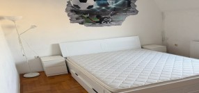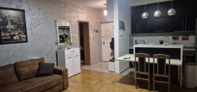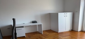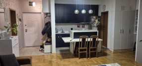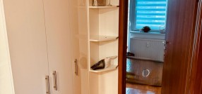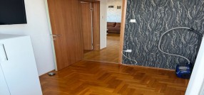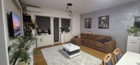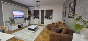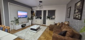 Izdajem trosoban, namešten stan, na 5-om spratu zgrade s liftom. Stan ima malo predsoblje (hodnik), wc, kuhinju sa trpezarijom, veliku dnevnu sobu, ostavu, veliku terasu iz dnevne sobe, veliku spavaću sobeu i dodatno radnu sobu / kancelariju sa malom terasom. Stan je namešten i u potpunosti tehnički opremljen. Pogodan je za porodice sa decom kao i poslovne ljude, sportiste. Stan je komforan i topao. Zgrada je obezbeđena video nadzorom, a parking obezbeđen ograđenim dvorištem sa električnom kapijom na daljinski upravljač. U stanu je instaliran optički internet. Od tehnike poseduje 2 televizora, mašinu za pranje i sušenje veša, mašinu za pranje sudova, rernu i grejnu ploču, frižider i zamrzivač, inverter klima uređaj, usisivač.