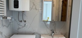 Izdajem nov dvosoban stan u centru grada, u novoj zgradi sagrađenoj prošle godine. Stan poseduje sopstveni parking u dvorištu zgrade. Grejanje je na gas, ali nema potrebe da se uključuje, jer je sa svih strana okružen drugim stanovim, pa je uvek prijatna temperatura. Sve u stanu je novo, sa optičkim internetom, ako je potrebno ima mesta i za kompjuterski sto. Stan je opremljen novim peškirima, posteljinom, setom tanjira, šerpama… Za više informacija, slobodno nazovite.