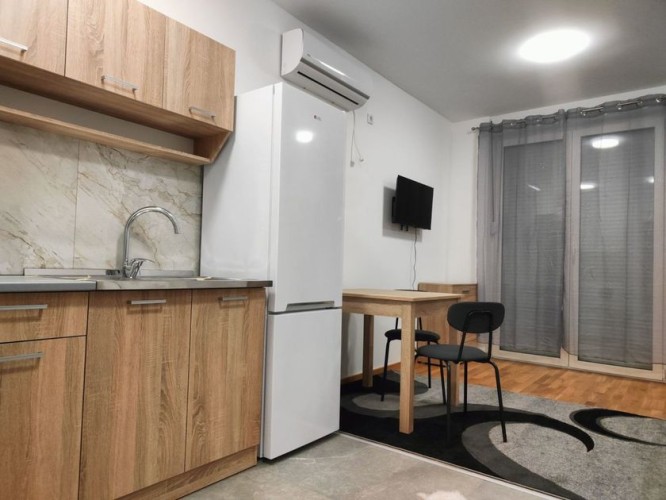Bajnat - Izdajemo garsonjeru u novoizgrađenoj zgradi na adresi Božidara Adžije. Stan je 28 m2, visoko prizemlje, centralno grejanje, klima. Garsonjera je nameštena i opremljena. Cena: 220 eura + depozit. Odmah useljivo! Mogućnost iznajmljivanja parking mesta uz doplatu 30e. Tel: 024523700 ili 0600523700.