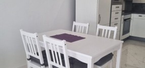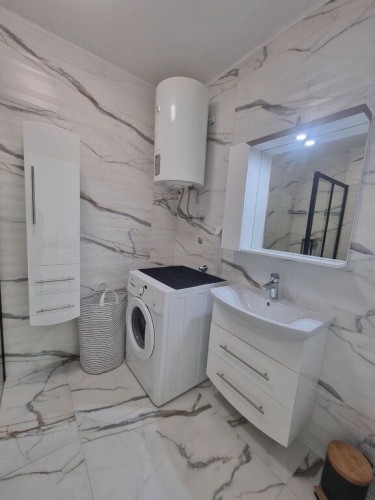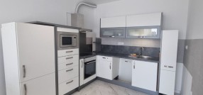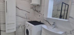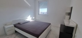 Opremljen dvosoban stan od 51m2 u novosagrađenoj zgradi sa liftom na 3/5 spratu. Sastoje sa od velikog dnevnog boravka sa trpezarijom i kuhinjom koji vodi na terasu, spavaće sobe i kupatila sa tuš kabinom. Na podovima su pločice, prozori su PVC, a grejanje podno je na gas. Stan je opremljen novim nameštajem i uređajima.
