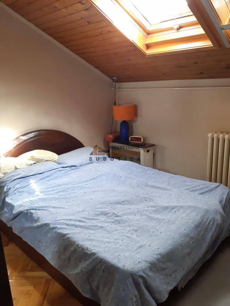 U strogom centru grada prodaje se stan u zgradi sa liftom, površine 94 m2. U svom sastavu ima predsoblje, kuhinju sa trpezarijom, kupatilo i dnevnu sobu iz koje se ide u potkrovlje gde su smeštene 2 spavaće sobe. Podovi su parket i pločice, stolarija je drvena. Grejanje je toplana. Postoji mogućnost za zamenu za 2 stana.