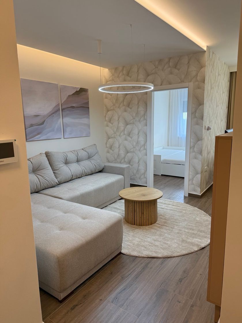 Izdajemo dvosoban stan od 44 m2, do sada nekorišćen, u **novoj zgradi** na četvrtom spratu, nov nameštaj, nova tehnika i grejanje na gas (podno grejanje). Stan se nalazi na odličnoj lokaciji **u ulici Ognjena Price.** **U cenu zakupa je uračunato i 1 parking mesto.**