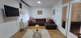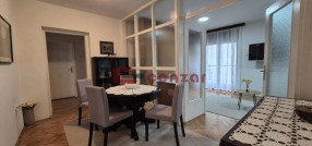 Prodaje se lep stan odličnog rasporeda prostorija u strogom centru grada, površine 82 m2. Nalazi se na drugom spratu u zgradi sa liftom i u svom sastavu ima predsoblje, toalet, centralnu trpezariju iz koje se ulazi u kuhinju, dnevni boravak sa terasom i odvojen deo gde su 2 spavaće sobe i kupatilo. Podovi su parket, pločice i vinil (topli pod) u kuhinji, stolarija je drvena. Grejanje je na toplanu ali je moguća regulacija temperature, ispred stana se nalazi razvodni orman. Stan je dvostrano orijentisan.