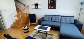 Izdaje se na duži vremenski period namešten trosoban dupleks stan u ulici Boška Vujića na petom spratu u zgradi sa liftom. Stan ima 90 m2, sastoji se od predsoblje, kupatila, dnevne sobe sa trpezarijom, kuhinje, zatvorene terase na podkrovlju dve spavaće sobe i kupatila. Grejanje je nagradsku toplanu sa alokatorima. Stan je potpuno namešten i odmah useljiv. Stan se izdaje nepušačima i bez kućnih ljubimaca. U dvorištu zgrade je pripadajući parking mesto za jedno vozilo, ispred zgrade je javni parking. Cena: 400 € + računi i depozit u visini jedne kirije CB nekretnine, Subotica Agencija je upisan u Registar posrednika pod brojem:1390 ______________________________________________________ Kiadó hosszútávra egy bútorozott, háromszobás, kétszintes (duplex) lakás a Boška Vujića utcában, az ötödik emeleten, liftes épületben. A lakás 90 m² alapterületű, és a következő helyiségekből áll: előszoba, fürdőszoba, nappali étkezővel, konyha, zárt terasz, valamint a tetőtérben két hálószoba és egy fürdőszoba. A fűtés távfűtés alokátorokkal. A lakás teljesen berendezett és azonnal beköltözhető. Csak nemdohányzó bérlőknek és háziállat nélkül kiadó. A társasház udvarában saját parkolóhely tartozik a lakáshoz, az épület előtt nyilvános parkoló is rendelkezésre áll. Bérleti díj: 400 € + rezsi +Kaució: egyhavi bérleti díj CB nekretnine, Szabadka Az ügynökség a közvetítők nyilvántartásában a 1390-as szám alatt van bejegyezve.