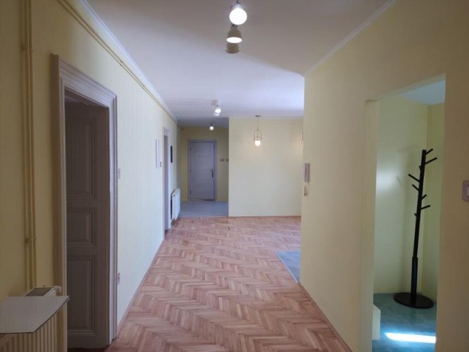Reprezentativna rezidencija u istorijskoj zgradi u centru Subotice ukupne površine od 180 m2 na drugom spratu u zgradi bez lifta, sa pogledom na katoličku katedralu i bulevar.Stan je renoviran 2023. godine, kompletno zamenjena elektrika, vodovod i cevi. Stan sadrži tri sobe površine po 30 metara, kuhinju, ognjište sa kaminom na drva, kupatilo, garderober i 20 m2 verandu. Na podovima su parket i pločice, prozori su drveni, a grejanje je na gas.