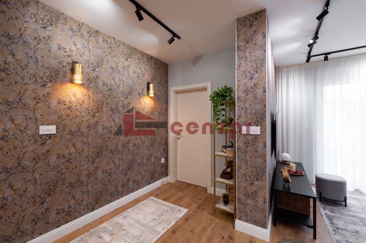 Izdaje se luksuzno opremljen stan u novoj zgradi ,na odličnoj lokaciji u blizini centra grada,opremljen novim savremenim aparatima vrhuskog kvaliteta.Grejanje podno na gas.Poseduje odvojenu spavaću sobu,dnevni boravak sa kuhinjim iz kojeg se izlazi na terasu.Ulazna vrata opremljena su modernom pametnom bravom koja se otvara otiskom prsta.Sve prostorije opremljene su električnim roletnama.Uz stan dolazi garažno parking mesto u okviru kojeg se nalazi punjač za električno punjenje automobila.