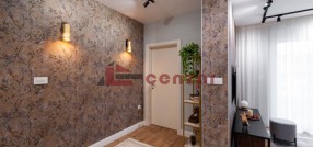 Izdaje se luksuzno opremljen stan u novoj zgradi ,na odličnoj lokaciji u blizini centra grada,opremljen novim savremenim aparatima vrhuskog kvaliteta.Grejanje podno na gas.Poseduje odvojenu spavaću sobu,dnevni boravak sa kuhinjim iz kojeg se izlazi na terasu.Ulazna vrata opremljena su modernom pametnom bravom koja se otvara otiskom prsta.Sve prostorije opremljene su električnim roletnama.Uz stan dolazi garažno parking mesto u okviru kojeg se nalazi punjač za električno punjenje automobila.