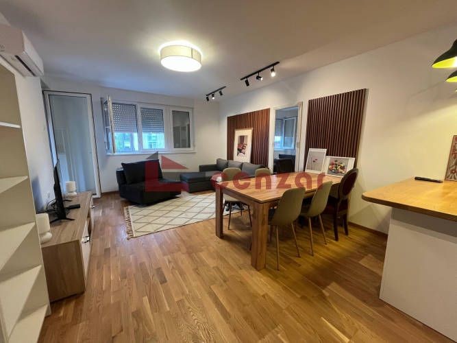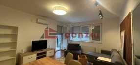 Na izuzetnoj lokaciji nedaleko od centra grada izdaje se potpuno nov stan,nikada nije bio useljavan,kompletno namešten novim nekorišćenim nameštajem i tehnikom.Nalazi se na 3 spratu u zgradi sa liftom.Poseduje dnevni boravak sa kuhinjom i trpezarijom ,terasu,odvojenu spavaću sobu i kupatilo.Privatno garažno mesto u suterenu zgrade po ceni 80 evra zkup.Zgrada je novoizgrađena,sa modernim ulazom i video nadzorom.