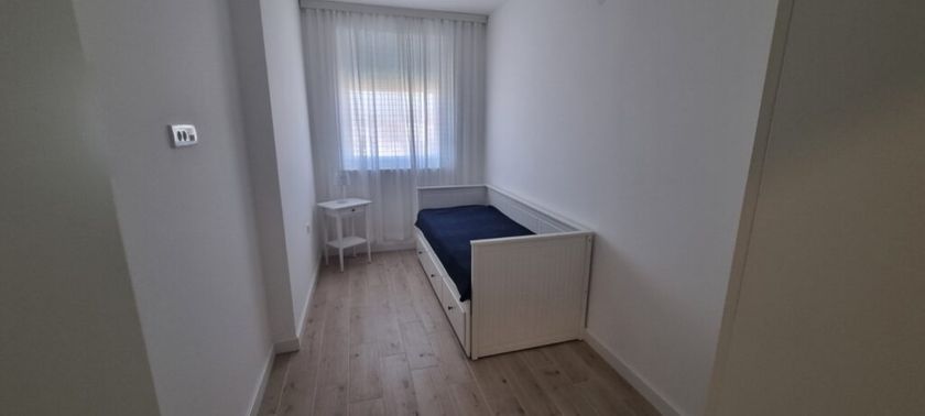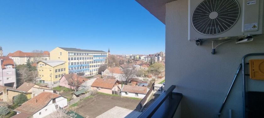 Subotica – Centar III, iznajmljuje se komplet namešten nov trosoban stan površine 57kvm na petom spratu u novoj zgradi sa liftom. U svom sastavu stan poseduje: kuhinju sa elementima i svim uređajima, trpezariju, dnevnu sobu, dve spavaće sobe sa ormanima i krevetima, hodnik, kupatilo sa veš mašinom, terasa sa lepim pogledom na centar. Stolarija je PVC, na podovima je keramika, podno grejanje na gas (mali režijski troškovi), ima klimu. Mesečna zakupnina iznosi 500e + depozit u visini jedne mesečne zakupnine. Stan poseduje obeleženo parking mesto u dvorištu koje se dodatno može iznajmiti za 35e mesečno! Red. br. 25-N18