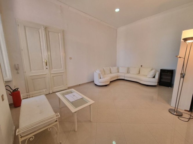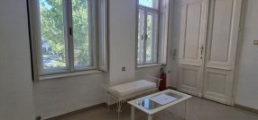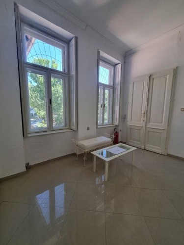Renoviran salonski stan u centru Subotice površine 85m2 na prvom spratu. Sastoji se od tri prolazne sobe, čajne kuhinje, kupatila i svetlarnika koji se koristi kao terasa. Prozori su drveni, na podovima su pločice, a grejanje je podno na struju. Zbog izuzetne lokacije pogodan je za ordinaciju, salon lepote ili neku kancelarijsku delatnost. Može na stambeni kredit.