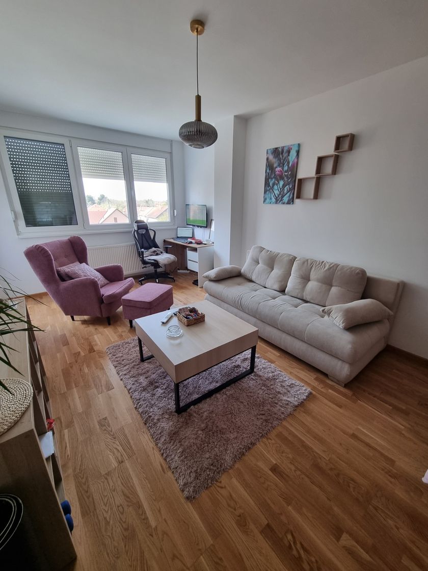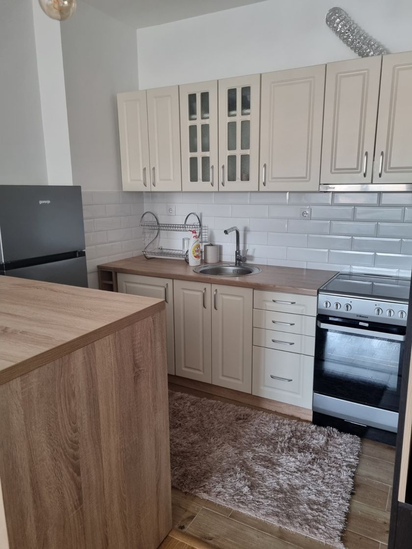 Iznajmljujem stan u novogradnji, jedna i po soba, potpuno opremljen i spreman za useljenje. Stan se nalazi na manje od 10 minuta hoda do centra grada, na odličnoj i mirnoj lokaciji. Moderan enterijer, kvalitetan nameštaj i svi neophodni uređaji pružaju maksimalnu udobnost. Idealan je za jednu osobu ili par. Terasa sa pogledom na dvorište, parking u okolini zgrade (moguće zasebno iznajmljivanje parking mesta u dvorištu zgrade).Za više informacija i dogovor oko gledanja, kontaktirajte me nakon 17h.