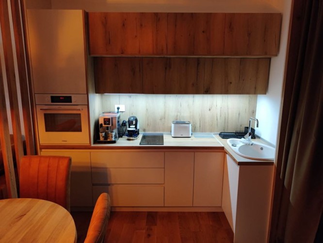 ``` Nova zgrada, veoma mirna sa otvorenim bazenom. Zgrada je odmah na jezeru sa pogledom na njega. U blizini se nalaze restorani i prodavnice, sve je na dohvat ruke. ```