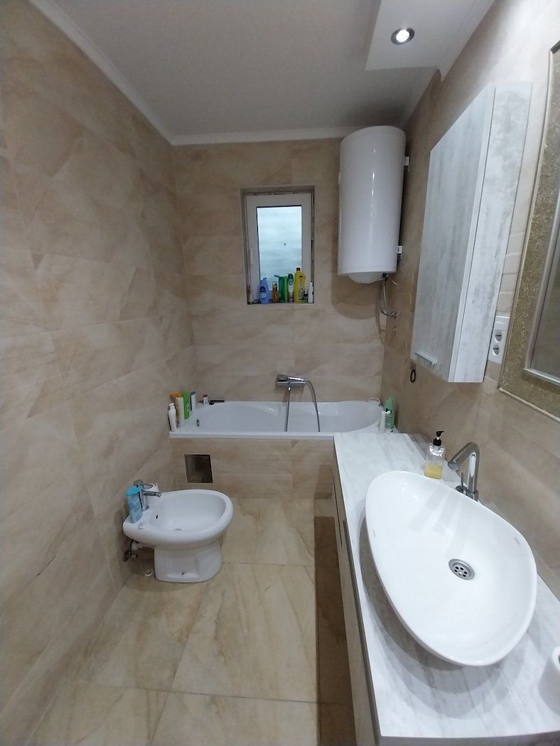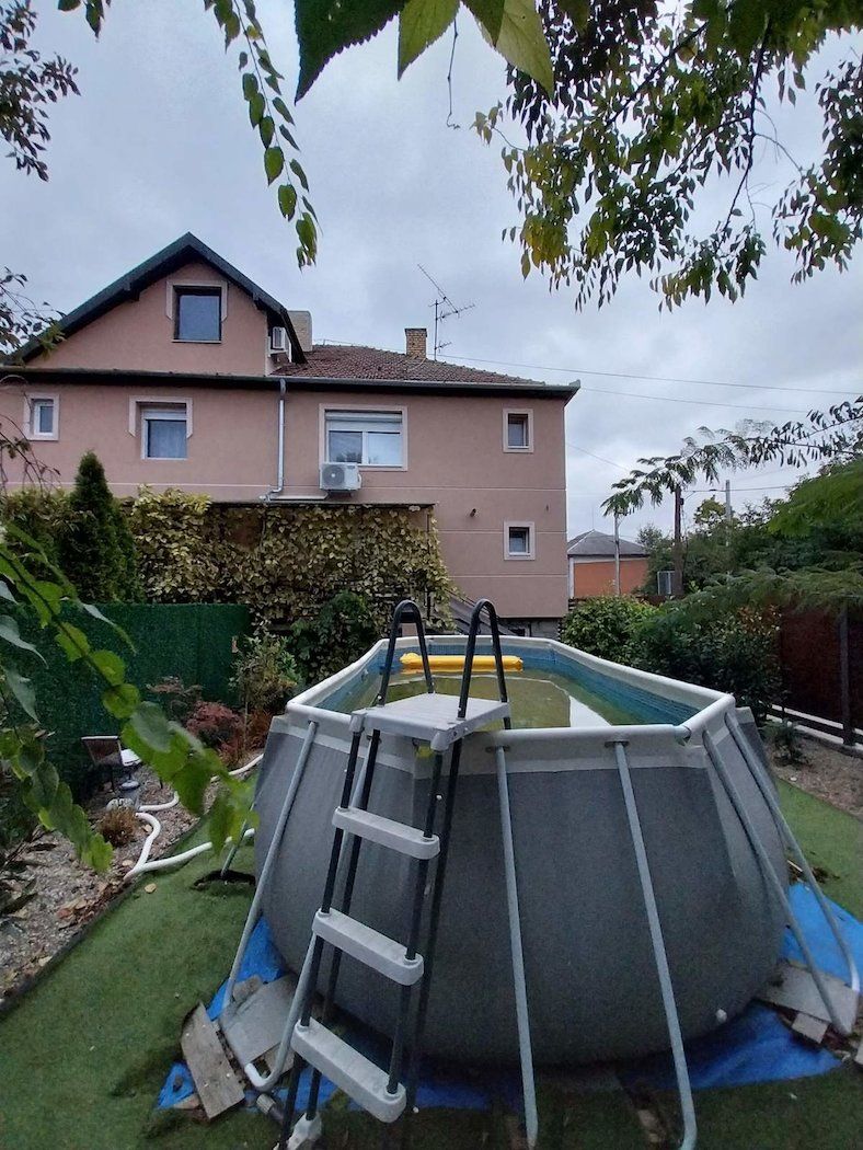 Kertvaroš - Prodajemo potpuno renoviranu petosobnu kuću u nizu ukupne površine 214 m2. Kuća ima suteren, visoko prizemlje i sprat. Na visokom prizemlju je ulaz sa hodnikom i stepeništem, dve odvojene sobe, toalet, kuhinja sa trpezarijom i ostavom i izlaz na terasu,dok su na spratu tri odvojene sobe i kupatilo. Sve je renovirano 2022. godine, nove instalacije, podovi parketi i pločice, nova stolarija sa električnim roletnama, nova kupatila i fasada, grejanje na toplotne pumpe. Pripadajuće ograđeno dvorište je 305 m2. Kuća je moderna, uknjižena i useljiva. Cena: 147.000 eura.