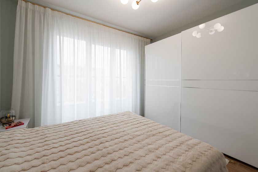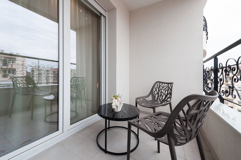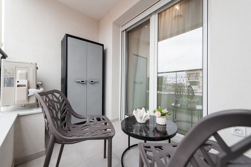 Izdaje se nov liksuzno opremljen stan od 58m2 nedalko od samog centra grada. Nalazi se na 5./6 spratu u zgradi sa lifom. Sastoji se od dnevnog boravka sa trpezarijom i kuhinjom koji vodi na istočno orjentisanu terasu, spavaće sobe i kupatila. Na podovima su pločice, prozori su PVC, a grejanje je podno na gas. Sigurnosna vrata su sa pametnom bravom sa otiskom prsta. Obezbeđeno je parking mesto u dvorištu zgrade. Obavezan depozit u visini jedne kirije, minimalni najam 1 godina za nepušače , bez kućnih ljubimaca.