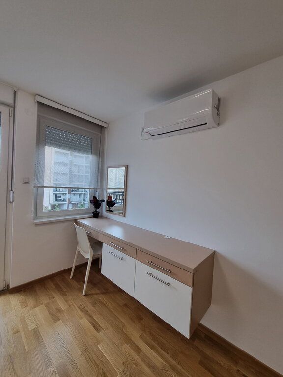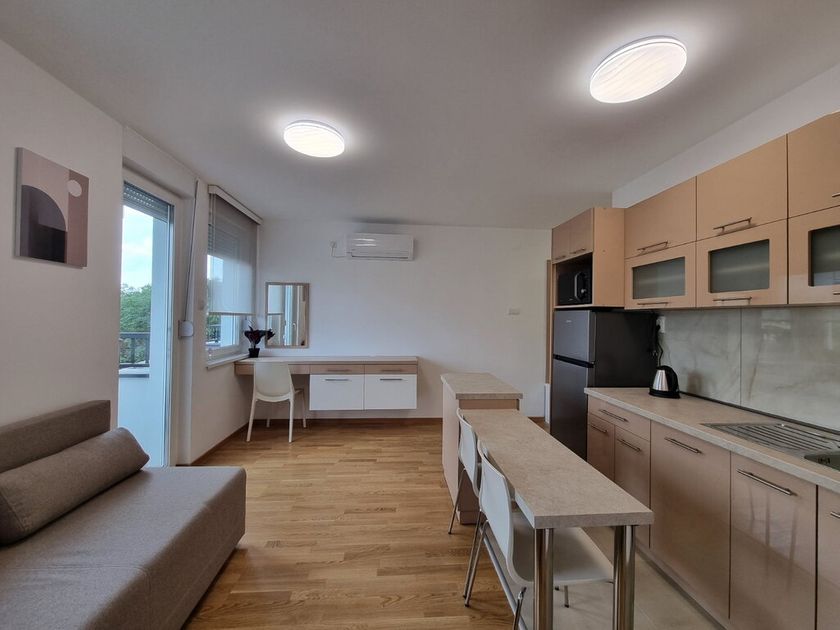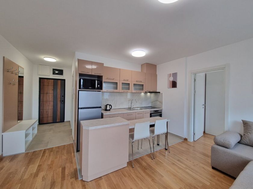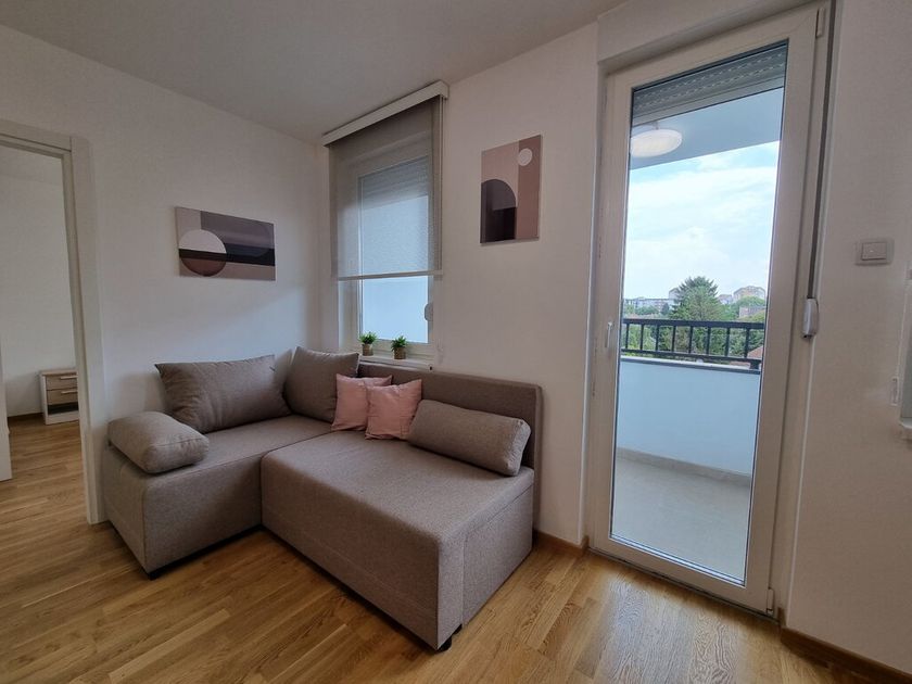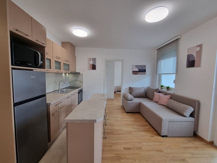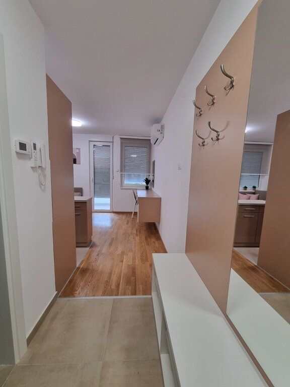 Nov dvosoban stan od 40m2 u novosagrađenoj zgradi sa liftom na 4/6 sprata. Sastoji se od dnevnog boravka sa trpezarjiom i kuhinjom koji vodi na terasu, spavaće sobe i kupatila. Na podovima su parket i pločice, prozori su PVC, a grejanje je na gas. Stan je opremljen novim nameštajemii uređajima. Obavezan depozit u visini jedne kirije, minimalni najam 6 meseci za nepušače , bez kućnih ljubimaca. Dostupan od 01.04.2026.