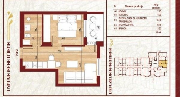 Palić – Prodaje se jednoiposoban apartman u izgradnji, površine 36,72kvm koji se nalazi u prizemlju. U svom sastavu apartman poseduje: dnevnu sobu sa kuhinjom, spavaću sobu, kupatilo i terasu. Kvalitetna unutrašnja stolarija sa sigurnosnim ulaznim vratima, aluminijumska spoljna stolarija sa roletnama, kvalitetna keramika na podovima, podno grejanje na GAS, inverter klima uređaj. Smart sistem za upravljanje grejanjem, bojlerom i roletnama. U dvorištu će biti otvoreni bazen namenjen isključivo vlasnicima. Objekat poseduje recepciju (koja između ostalog olakšava iznajmljivanje apartmana – takozvani “stan na dan”). Lokacija je odlična na svega 150m od jezera. Završetak radova: mart 2027. godine. Cena 2100e/m2 sa PDV. Red. br. 26-N36