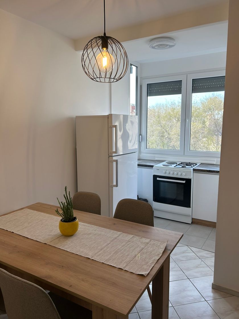 **Stan u centru Subotice – Potpuno renoviran i moderno opremljen!** Lokacija: Ulica Petra Lekovića broj 5, Centar 2, Subotica Samo 5 minuta hoda od centra grada, sa terasom koja pruža prelep pogled na Gradsku kuću i Aleju. ✨ **Detalji stana:** - **Kompletan nameštaj**: nova PVC stolarija, roletne, komarnici, sigurnosna vrata - **Grejanje**: centralno - **Dodatna oprema**: klima uređaj, digitalni interfon, smart TV (70 inča), led osvetljenje - **Internet i kablovska**: optički internet, fiksni telefon i kablovska **Parking i garaža:** - Parking ispred zgrade - Mogućnost korišćenja grejane garaže uz dogovor **Kuhinja:** - Kompletna oprema: granitna sudopera, rerna, šporet, frižider i sto sa 4 stolice - mašina za pranje sudova - Vešernica sa mašinom za veš u sklopu kuhinje ️ **Dnevna soba:** - Ugaona garnitura, klub sto, veliki smart TV **Kupatilo:** - Potpuno renovirano: tuš kabina, WC, umivaonik sa ormarićem, bojler ️ **Spavaće sobe:** - Kreveti sa prostorom za odlaganje i garderober **Cena:** 590€ mesečno + depozit u visini jedne kirije (cena nije fiksna) ODMAH USELJIV