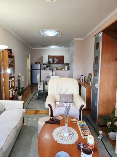 U kvalitetnoj zgradi novije gradnje prodaje se lep, namešten stan na 4/4 spratu u zgradi bez lifta. Sastoji se od dnevnog boravka sa kuhinjom i trpezarijom, spavaće sobe koja ima svoju terasu i kupatila sa tuš kabinom. Na podovima je parket, prozori su PVC a grejanje je gradsko sa alokatorima.