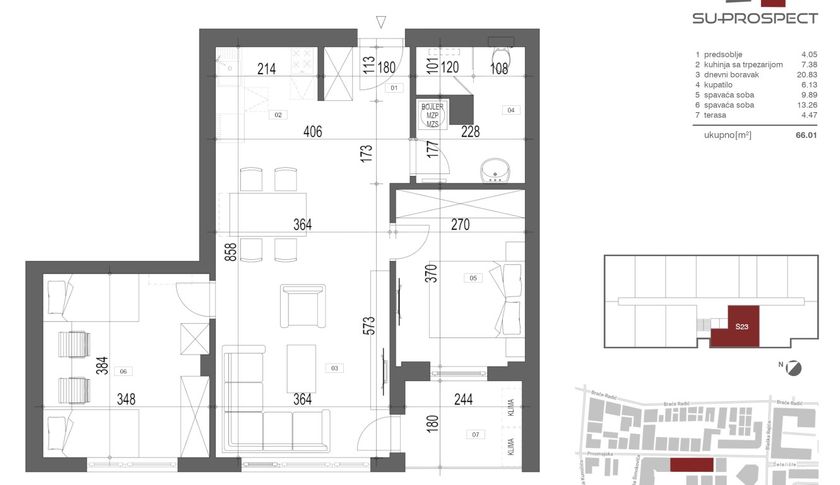 Subotica, Prozivka, na atraktivnoj lokaciji (u blizini škola, vrtića, pijace, bazena, velikih marketa) prodaju se stanovi u izgradnji u zgradi sa šest spratova i dva lifta. Grejanje će biti podno na gas, stanovi će posedovati sigurnosna vrata, inverter klime, odličnu zvučnu izolaciju, prozori i vrata će biti izrađeni od PVC-a sa trostrukim staklom sa ugrađenim roletnama na elektromotore, na podovima će imati italijanske granitne ploče. Zgrada će posedovati biciklanu površine 200m². Rok završetka izgradnje je predviđen za jun 2026. godine. Cena po 1m² iznosi 1950 eura sa PDV-om. Postoji mogućnost povrata PDV-a.